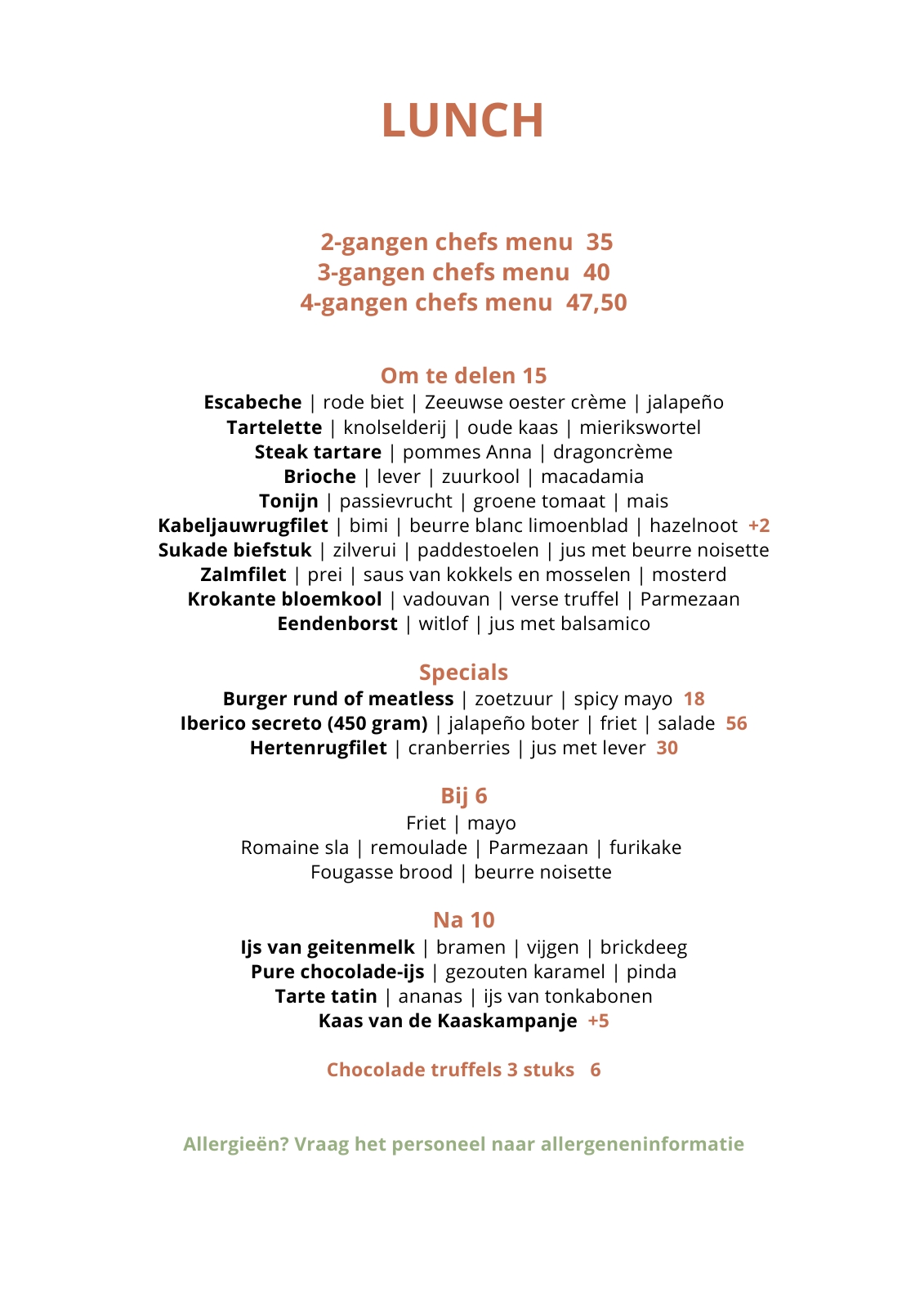 Door de combinatie van á la carte gerechten met een wisselend Chef’s menu, is er bij ons voor ieder wat wils.